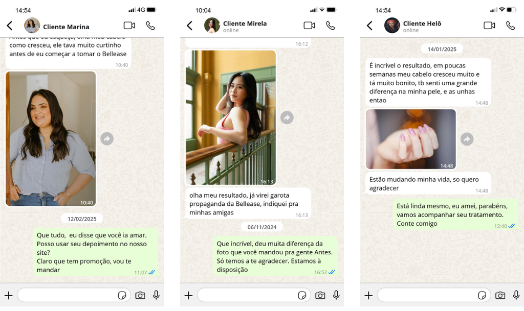 Depoimentos reais de mulheres que transformaram seus cabelos com Bellease Hair ✨